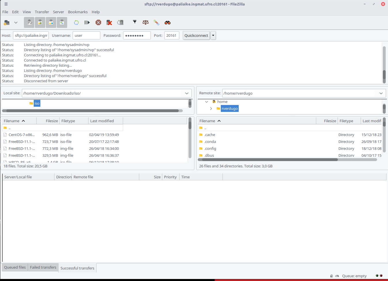 scp -P 20161 -r archivo-local.zip user@paliaike.ingmat.ufro.cl:~user/    # upload desde computador local hacia el cluster